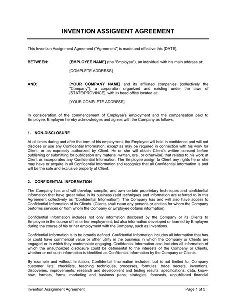 +30 Assignment Of Inventions Agreement Template. These agreements typically appear in other employment documents such as confidentiality agreements or an independent contractor agreement. However, an employee invention assignment agreement exclusion clause within these agreements exempts particular inventions from this.