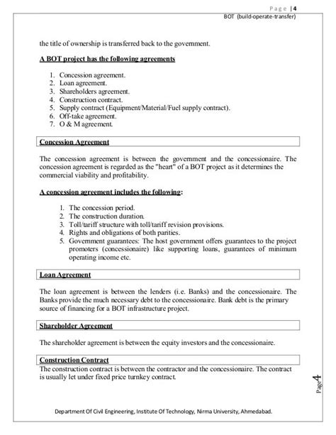 Learn more about this contract and other key contractual terms and issues by viewing the many sample contracts findlaw has to offer in our corporate counsel center. Web design, build operate (dbo), build own operate transfer (boot), build 84 operate transfer (bot), build own operate (boo), design build 85 finance operate (dbfo) contracts 86 bot contracts (each form has different grades of responsibility to each parties) are appropriate to 87 facilities that are complex or requires some skills to operate. Web build operate transfer (bot) agreement for [ ] small scale water project between [authority] and [operator] [prepared as a sample.
