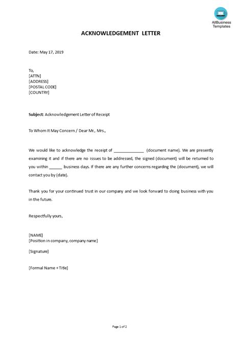 Letter For Acknowledgement Of Receipt Gotilo from gotilo.org