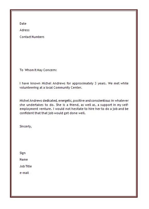 If you’re asked to write a character letter for someone, there are several things you should include in the letter, such as: Full template posted by rebecca safier | may 19, 2016 12:00:00 pm letters of recommendation thoreau once wrote, “the language of friendship is not words but meanings.” in the case of a character reference, the language of friendship involves both words and meanings. Web updated may 17, 2023 or use contractscounsel to hire an attorney!
