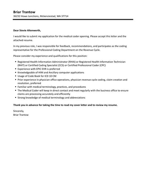 Please accept this letter and the attached resume as my interest in this position. Improve your chances of getting noticed with a powerful cover letter. Dear [hiring manager], i am writing to apply for the medical coder position at xyz healthcare.