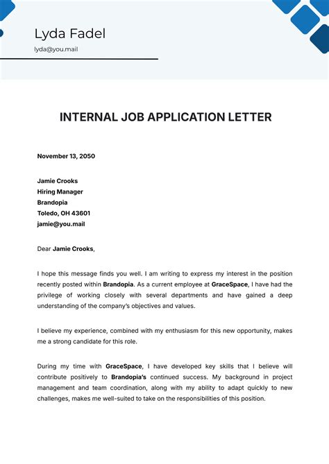 +14 Internal Job Application Letter Template. Web download this free example cover letter for internal position example (text version) this sample cover letter for an internal position is effective because it’s concise, positive, and direct. How to not trip up on the basics: