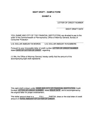 Web a letter of credit is a commitment by a bank on behalf of the importer (foreign buyer) that payment will be made to the beneficiary (exporter), provided the terms and conditions stated in the letter of credit have been met, as evidenced by the presentation of. Web a sight letter of credit is a document which stands as a proof of payment in return of the goods or services to be released for the transportation by the seller. Web letter of credit number sight draft date you, [name and city of the financial institution], are directed to pay to the order of the commonwealth of pennsylvania, office of attorney general, bureau of consumer protection u.s.