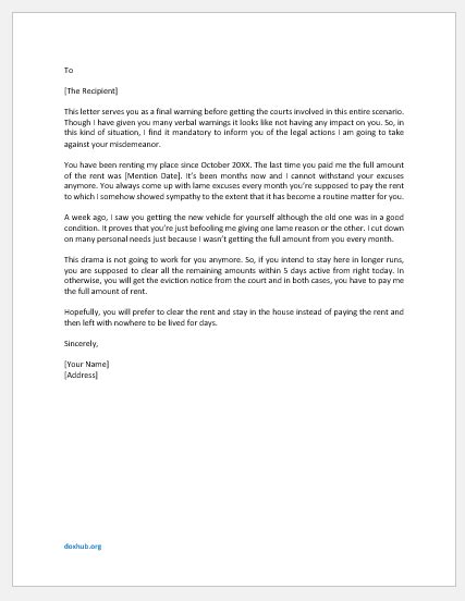 PreEviction Warning Letter For Your Needs Letter Template Collection from simpleartifact.com