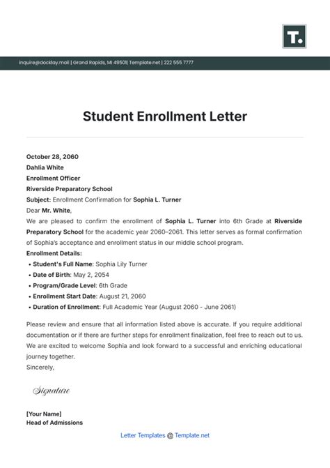 Web download this school enrollment confirmation letter template design in word, google docs, pdf format. Free proof of school enrollment letter is in editable, printable format. She is pre~registered as a fu]j time student for the fall day 2015.