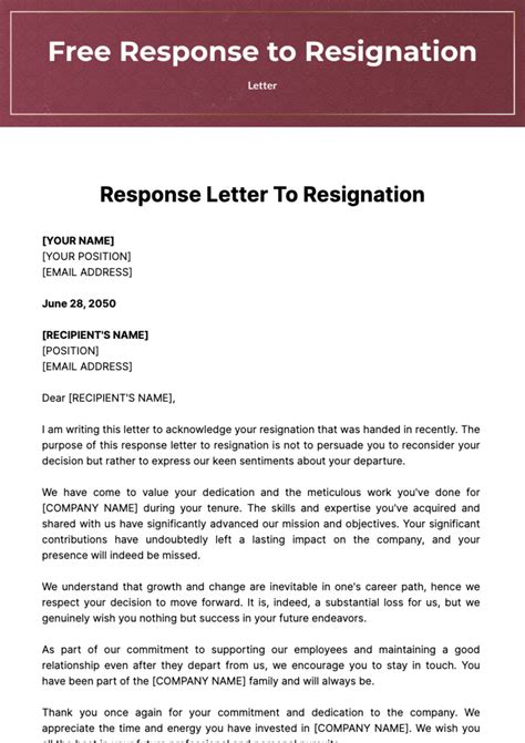 A general guide for a resignation letter response 01 we regret to hear that you have decided to move on from [insert name of company] due to [insert problem/reason for resignation]. Here is how to write it: