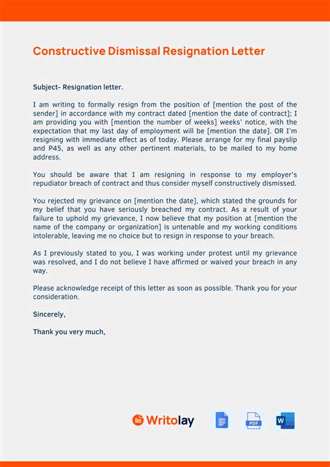 Web Sending A Formal Letter When Resigning Due To Constructive Dismissal Is Crucial.