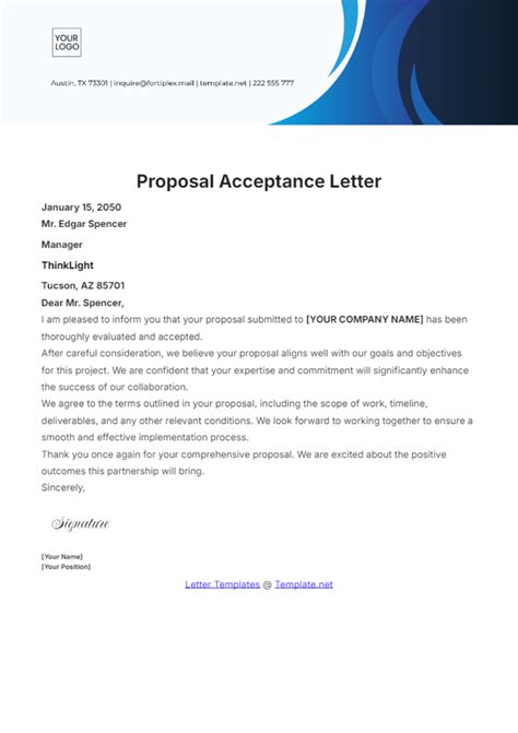 Elegant Sample Proposal Acceptance Letter Template. Letter to accept the bid proposal respected sir/madam, If the other party has to sign off on documents, these documents should be in letterheads that contain your company’s information.
