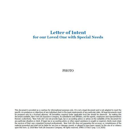 Professional Special Needs Letter Of Intent Template