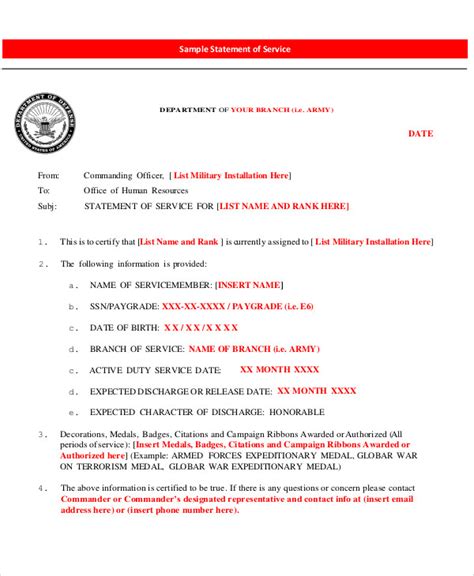 Web A Statement Of Service Letter Is An Official Document That Verifies An Individual’s Employment Status In The Military.