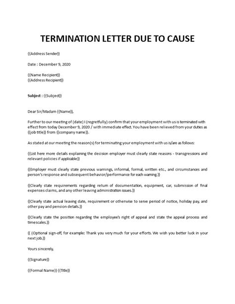30 Termination for Cause Letter Example Document Template from swimmingfreestyle.net
