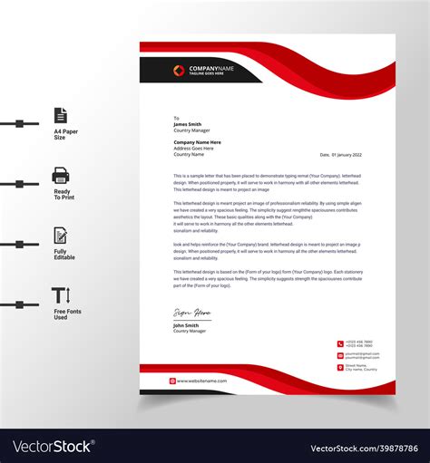 Business wave letterhead template design red Vector Image from www.vectorstock.com