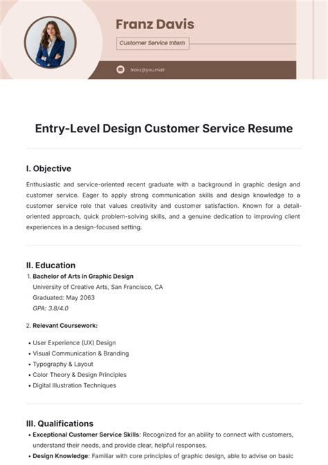 EntryLevel Customer Service Representative Resume Template Free from www.pinterest.com