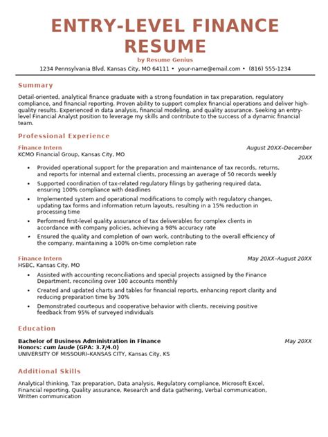 Awasome Entry Level Finance Resume Template. Top hard & soft skills. A financial analyst relies on skills such as critical thinking, logistics, and mathematical aptitude.