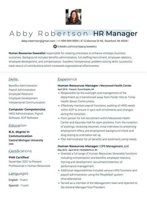 No need to think about design details. Create the perfect hr manager job description for a resume; Human resources manager resume example.