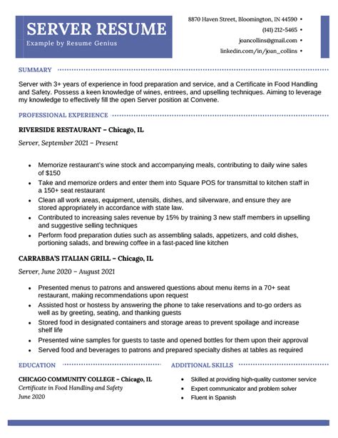 Web this server resume example keeps it short and simple. Your resume can be your meal ticket to a great new job. As a server, you know better than anyone that presentation is.