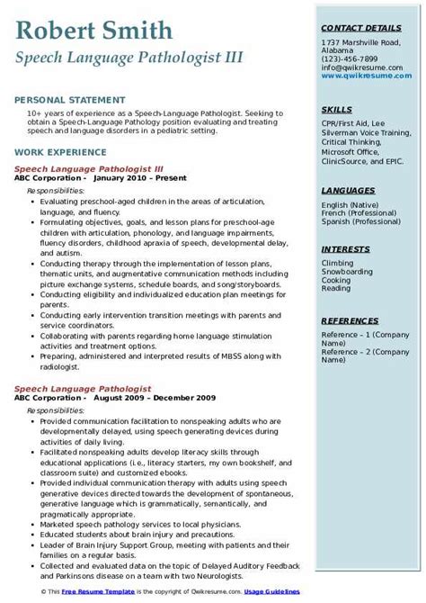A speech pathologist resume experience section to be proud of. Top speech pathologist skills for your resume. 634 stephany landing, dallas, tx.