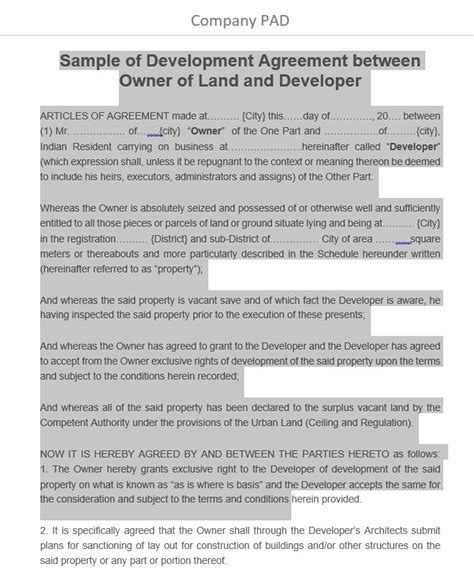 Elegant Development Agreement Between Landowner And Developer Template
