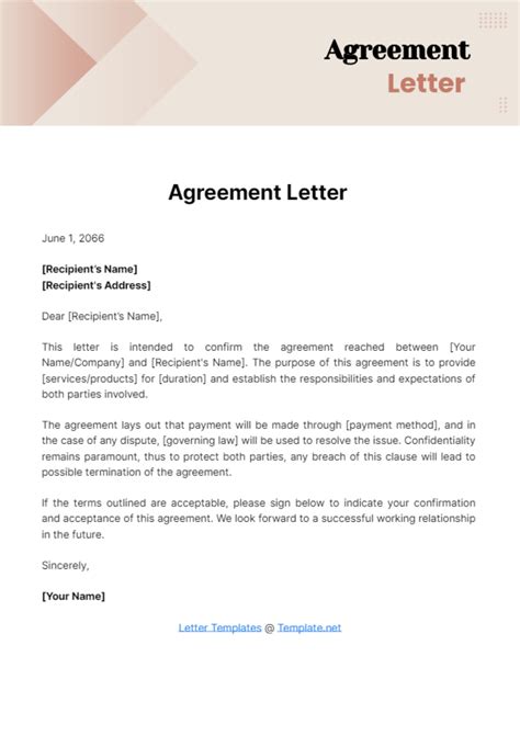 Through An Agreement Letter, An Arrangement Between Two Parties Will Be Easily And Effectively Simplified.