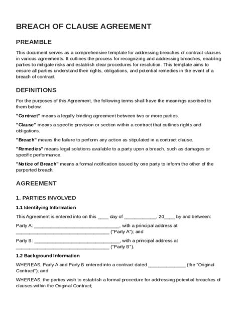 Incredible Breach Of Contract Clause Template. Improper termination notice, willful violation, malicious or deceptive intent and/or practice that can. Breach of contract shall include but is not limited to:
