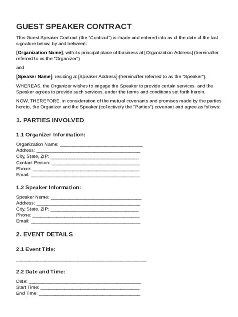Web are you looking for a free, legally binding speaking engagement contract template? The speaker is understood to be an independent contractor for the purposes of this agreement. Web why choose our guest speaker licensing contract template?