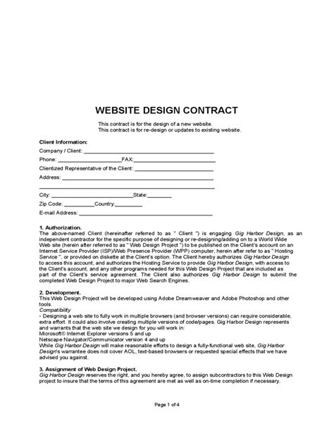 Web Web Design Contract Template.