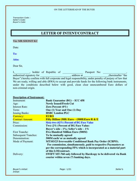 LETTER OF INTENT/CONTRACT in Word and Pdf formats page 17 of 21 from www.dexform.com
