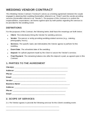 Cool Simple Wedding Vendor Contract Template. This vendor contract template includes details about who the. A vendor agreement is a document through which two parties, one called a vendor and one called an organizer, contract for the sale of vendor's goods at.